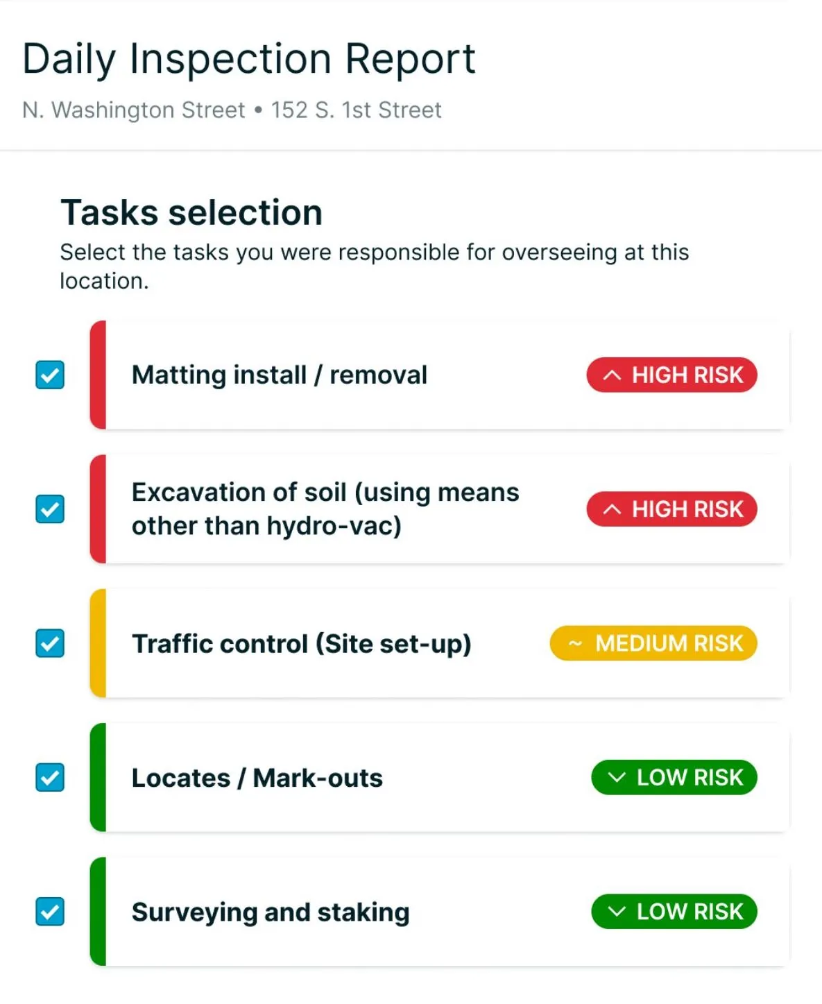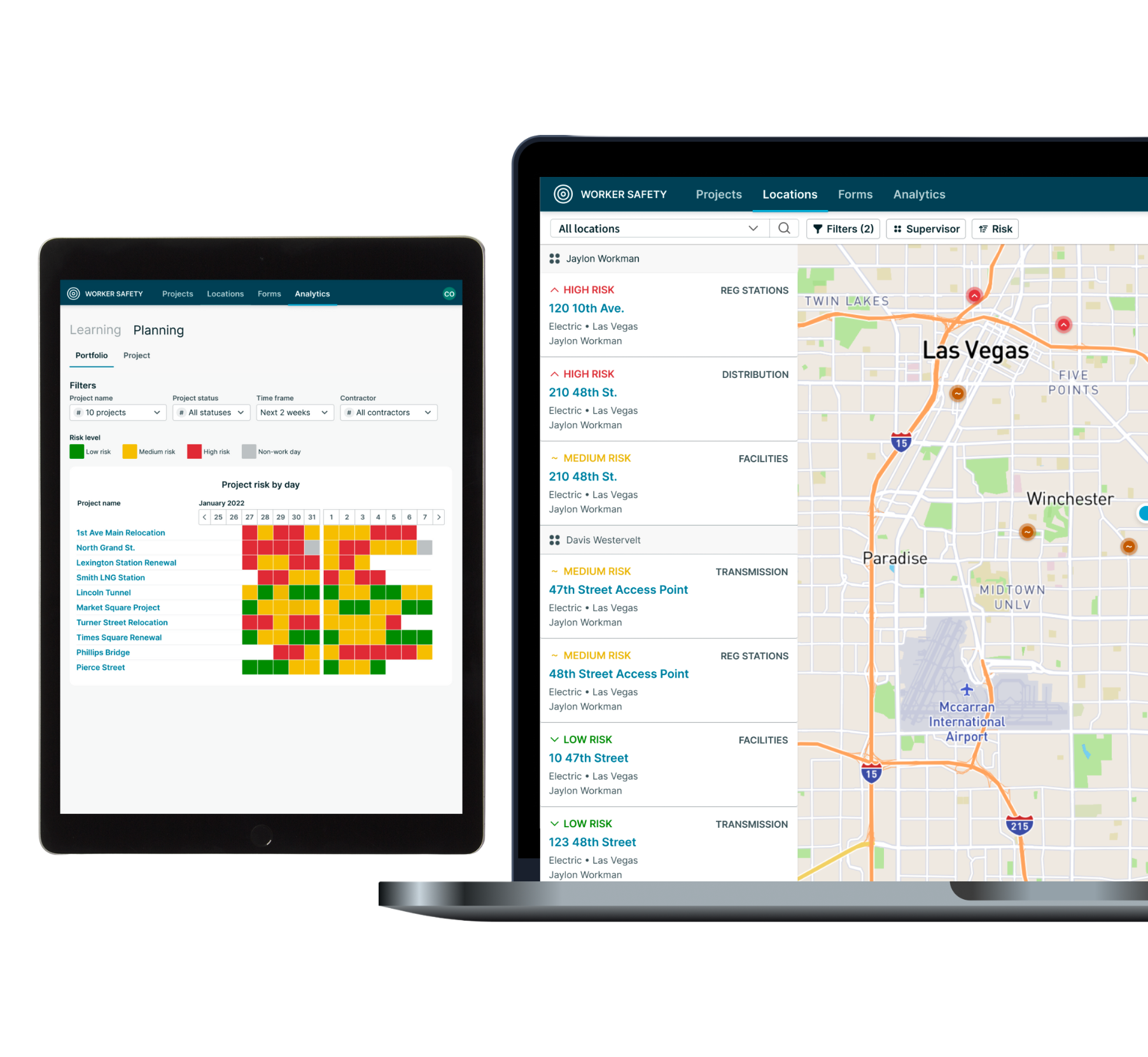 - Portfolio Risk Tracking: Monitor safety KPIs and trends across projects, tasks, and contractors.