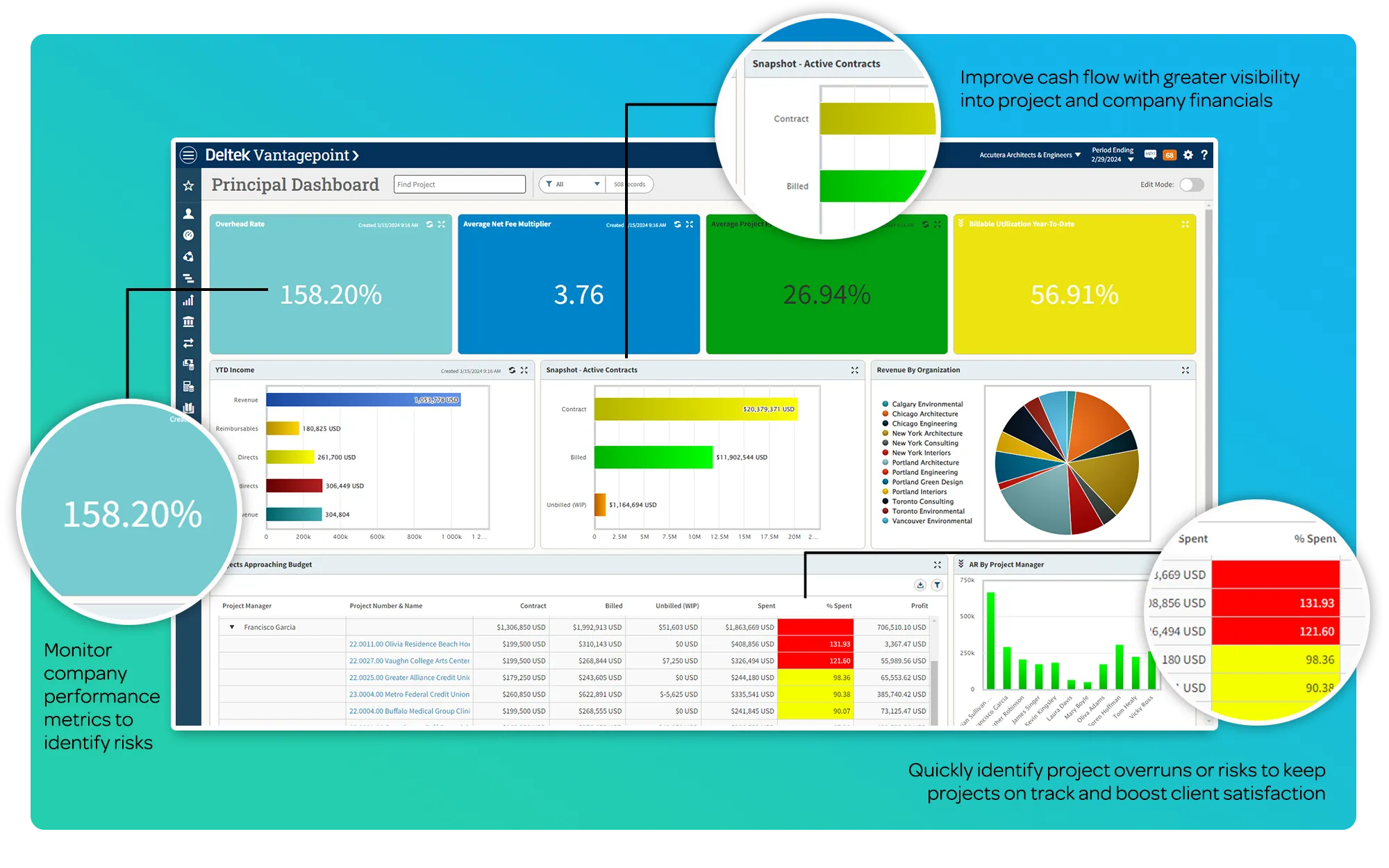 Vantagepoint is an intuitive, powerful project and financial management solution that puts your projects and people at the center of your A&E business.