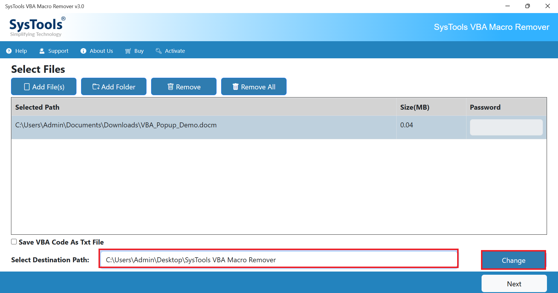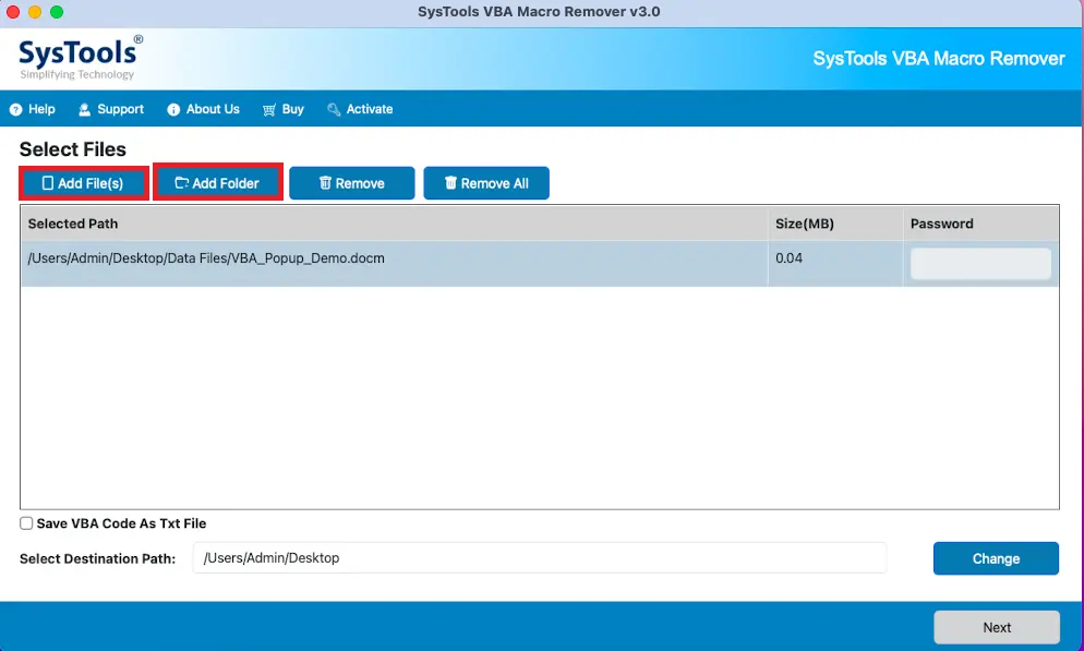 SysTools VBA Macro Remover efficiently removes VBA macro code from Word, Excel, and PowerPoint files, enhancing document security and preventing macro viruses.