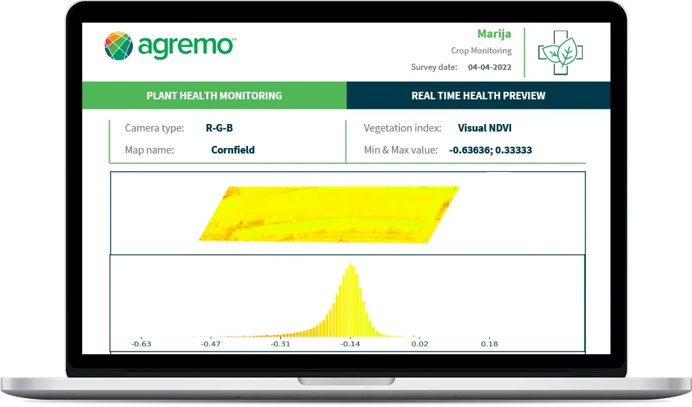 Agremo Vegetation Index is a precision agriculture tool that utilizes NDVI (Normalized Difference Vegetation Index) to analyze crop health and vigor. It processes drone or satellite imagery to generate accurate vegetation maps, helping farmers monitor plant growth, detect stress areas early, and optimize resource allocation. This solution enables data-driven decisions to improve yield and reduce input costs, enhancing sustainability and productivity in modern farming.