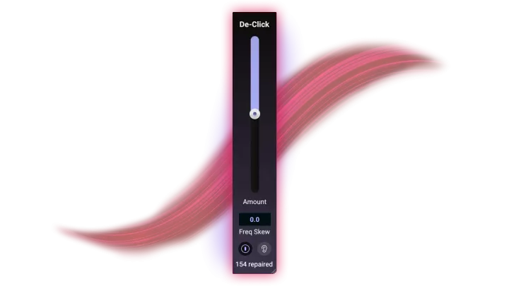 Clicks, pops, and other mouth sounds stealing the spotlight? Don’t worry, De-Click knows where they are and how to make them disappear. Just turn down the fader, watch the repair counter go up, and let your vocals take center stage as they were meant to sound.