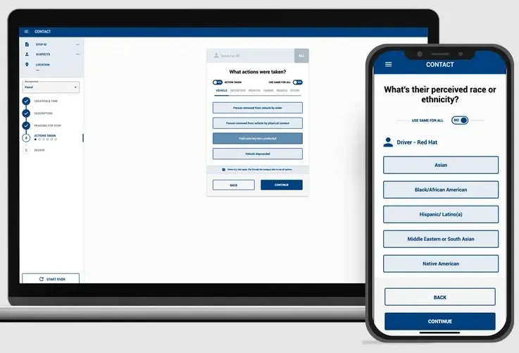 - Automated Data Collection: Simplify the process of capturing officer-initiated contact data through intuitive mobile and desktop interfaces.