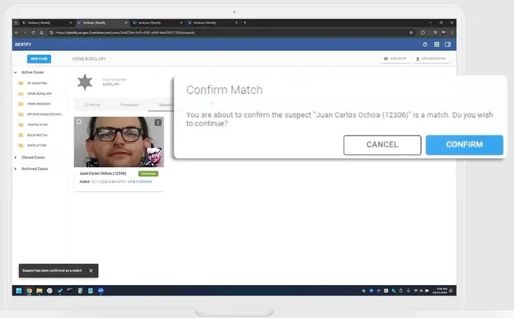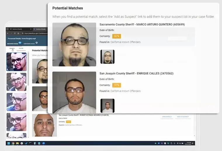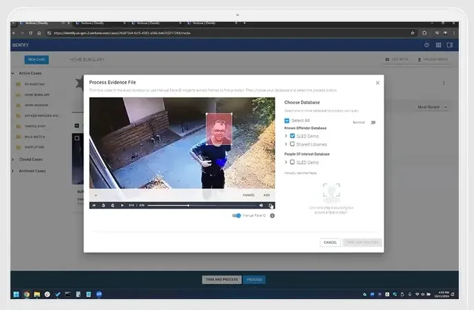 - AI-Powered Facial Recognition: Automatically detect and match faces from video and image evidence against agency databases.