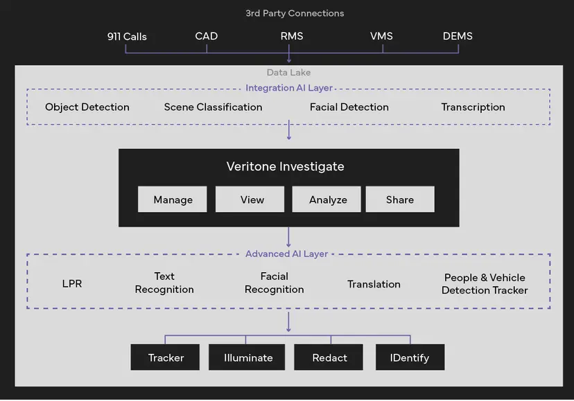 Veritone Investigate is a purpose-built, AI-driven application designed to accelerate and simplify investigative workflows for law enforcement and public safety organizations. Built on Veritone’s aiWARE platform, Investigate enables agencies to securely collect, analyze, and share critical information across multiple data sources, including digital evidence, records, and external databases. The solution empowers investigators to uncover actionable insights faster, reduce manual processes, and improve collaboration across jurisdictions. By leveraging advanced artificial intelligence, Veritone Investigate transforms traditional investigative processes into a streamlined, data-driven approach that enhances efficiency and compliance.