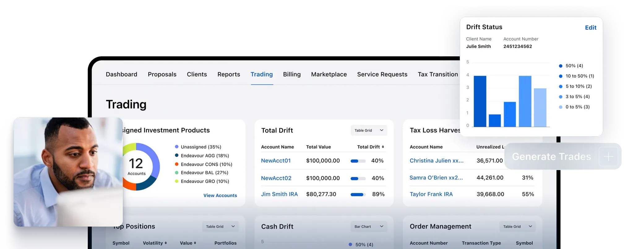 - Unified Advisor Dashboard: Centralized interface for reviewing, planning, and executing investment strategies.