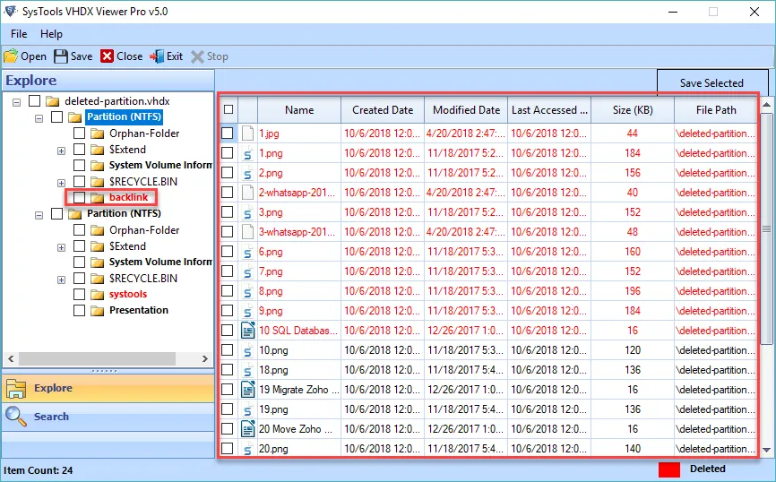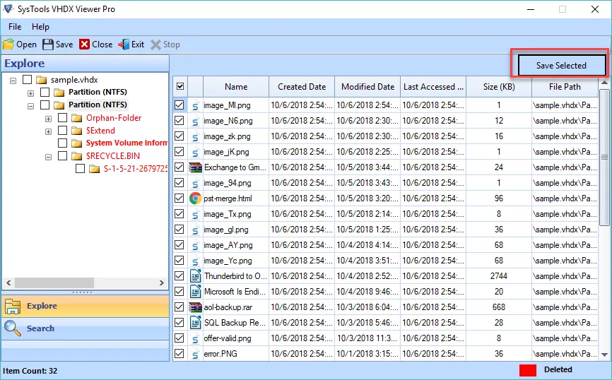 - Examines and checks the VHDX image files properly, allowing users to search VHDX File Items according to created date, modified date & Last Accessed Date, etc.
