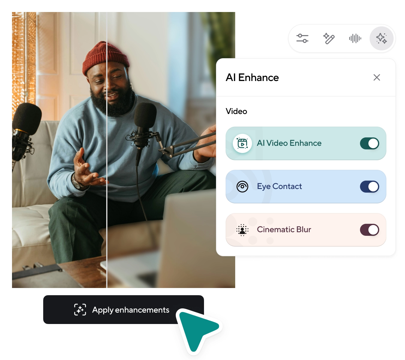 Create studio-quality videos instantly with Podcastle’s intuitive AI-powered browser-based Video Editor.