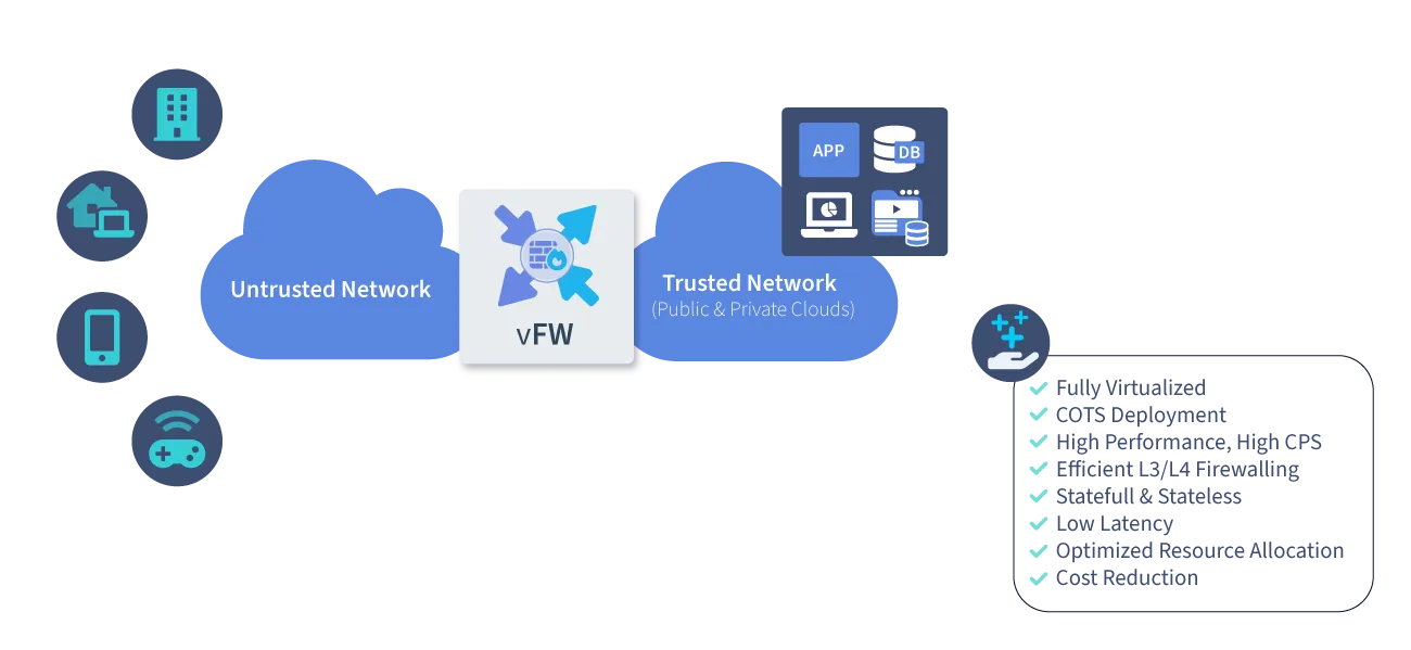 6WIND Virtual Firewall is a high-performance, cloud-native firewall that provides advanced Layer 3 and Layer 4 security, routing, and segmentation for virtualized and cloud environments, supporting scalable deployments, multi-tenancy, and comprehensive protection for enterprise and service provider networks.