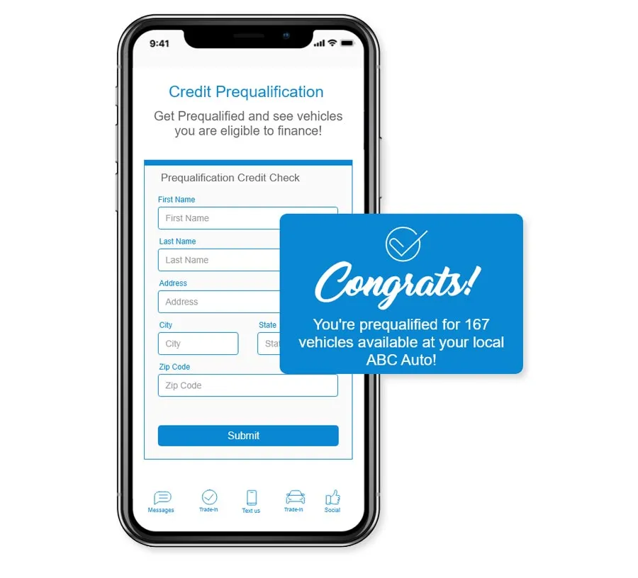 - Online Credit Prequalification: Integrates online prequalification to match buyers to vehicles they finance, reducing time at the dealership and improving closing efficiency.