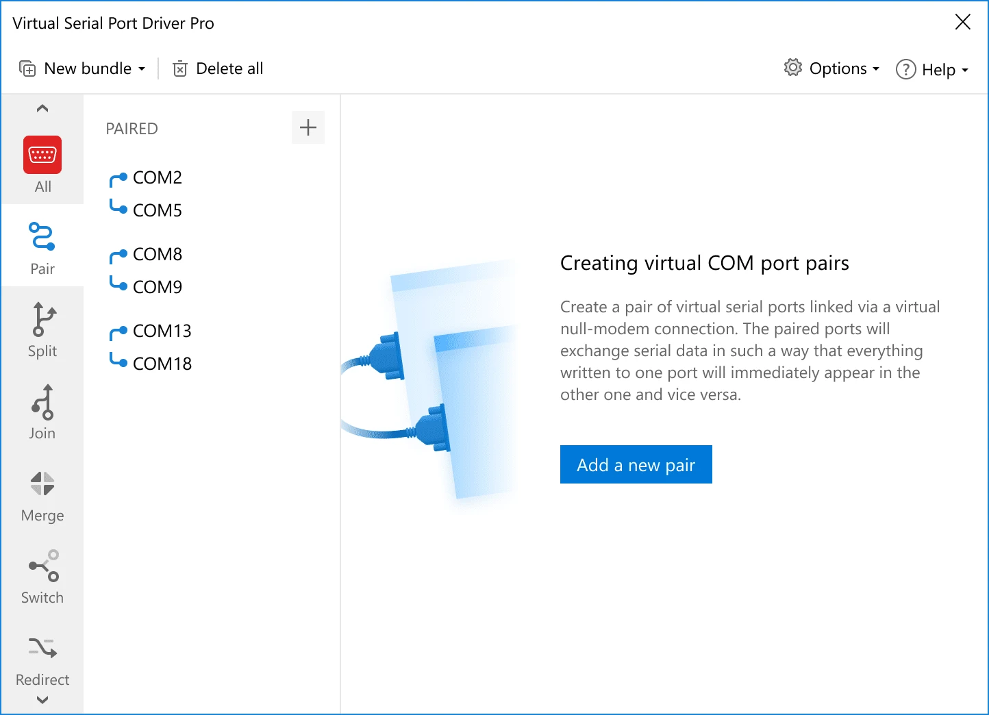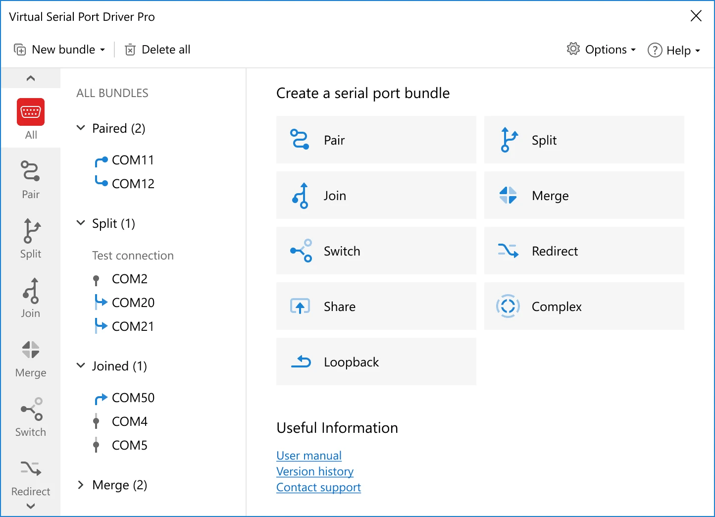Virtual COM Port Creation Emulates physical serial ports.