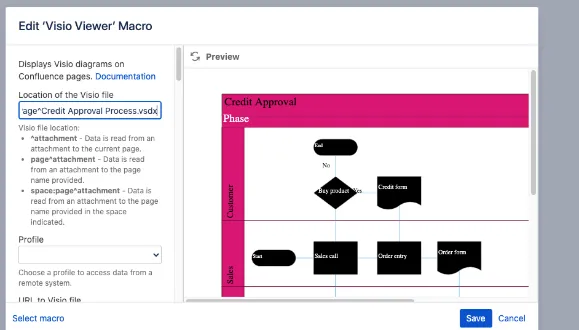 Whether your Visio diagram is attached to your Confluence page, lives on the server, Microsoft OneDrive, or other remote URL, Visio for Confluence makes it easy to bring in and display your diagrams.