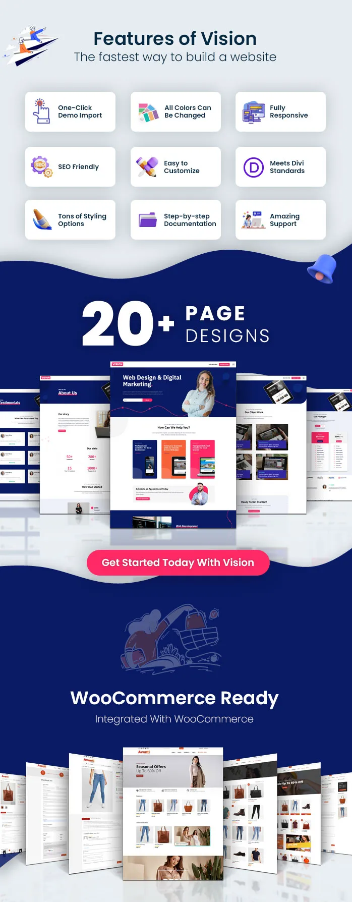 Vision is an agency Divi child theme for classy & modern brands. Perfect website for any type of agency. This is a fully customizable Divi template designed to get your website up and running in no time.