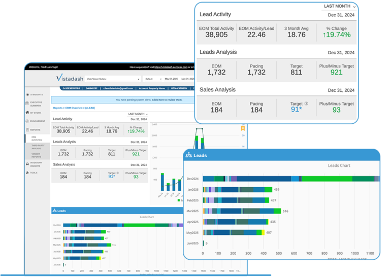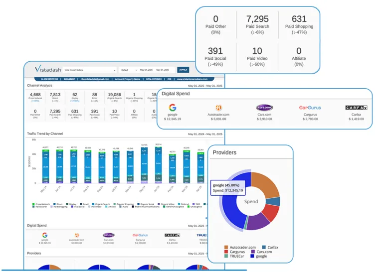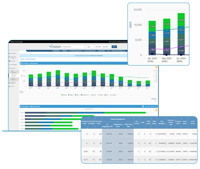 VistaDash is a cloud‑based dashboard and analytics solution designed for automotive dealerships. It focuses on presenting key operational and financial metrics through visual dashboards that are accessible in real time. The platform is used primarily for performance monitoring rather than transactional processing. It aggregates dealership data and presents it in a structured, visual format that allows management and department leaders to quickly assess operational status and trends. VistaDash emphasizes simplicity and clarity by highlighting key performance indicators across sales, service, parts, and financial operations. It supports both high‑level executive views and department‑specific dashboards to align daily operations with management oversight.