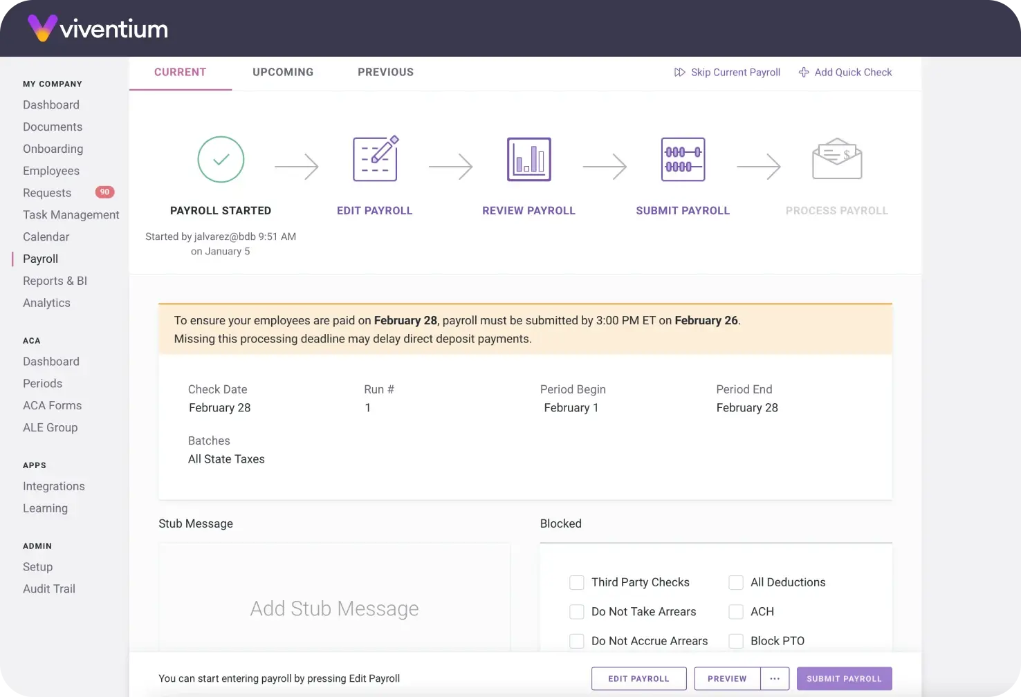 - Mobile app for employees to access pay stubs, PTO requests, and benefits.