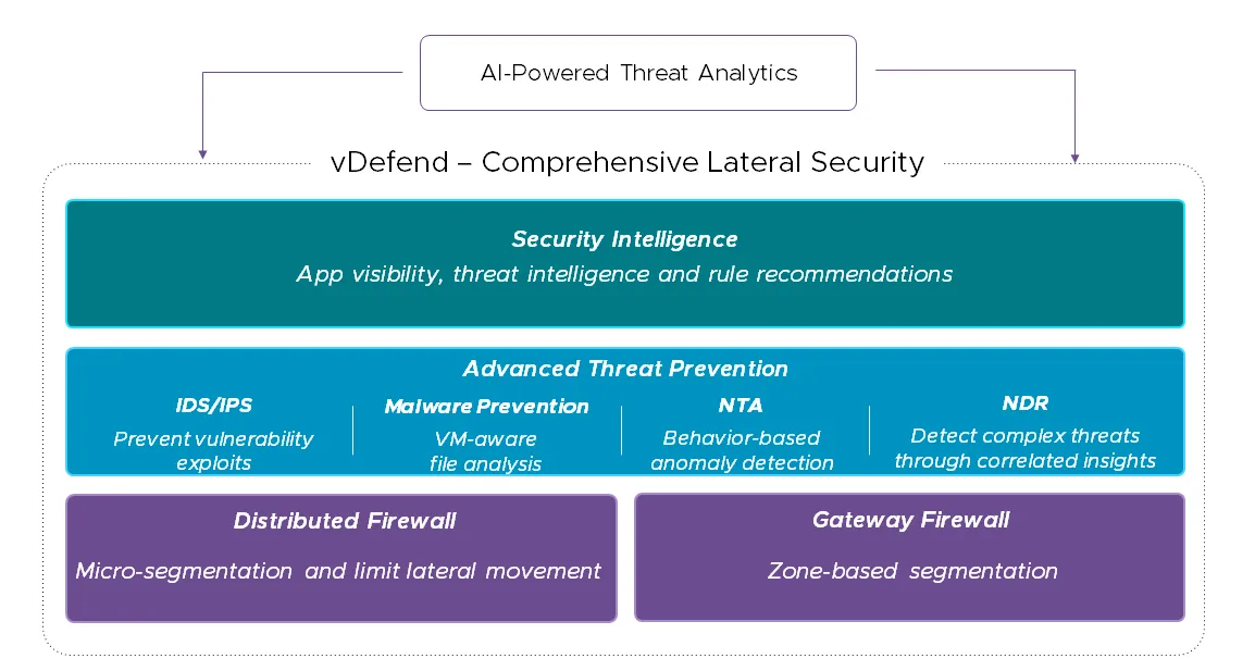 Protect private cloud workloads from advanced attacks and ransomware with high-fidelity multi-layer defense using VMware vDefend Advanced Threat Prevention.