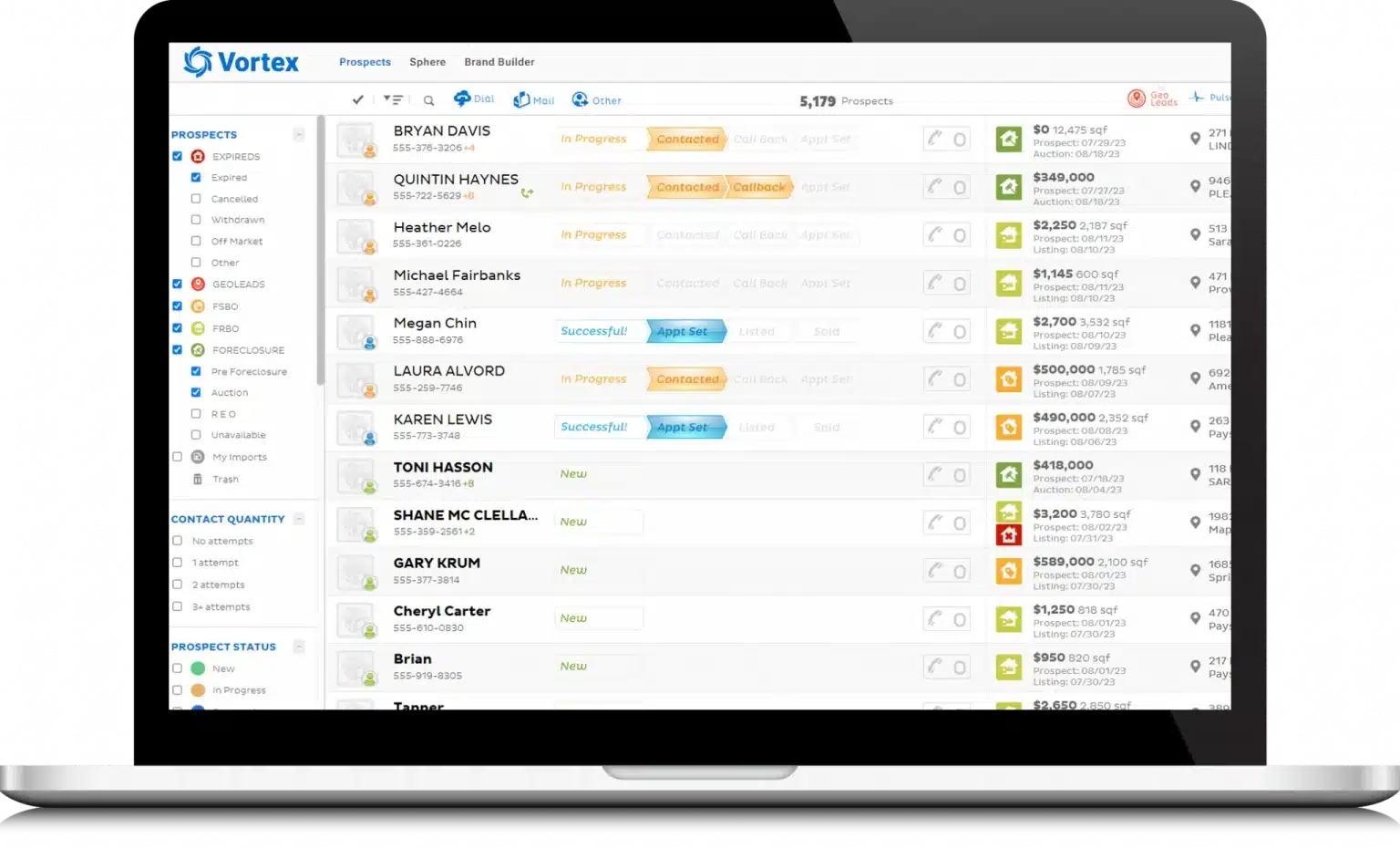 Vortex® is an all-in-one platform designed for real estate agents and teams to manage their prospecting efforts efficiently. It serves as a central hub, consolidating all leads, marketing tools, and communication channels into a single, user-friendly interface. The platform offers robust filtering capabilities, allowing users to easily view, sort, and contact their REDX leads. Security is a key feature, with lead verification to prevent prospecting of active or re-listed properties and to avoid contacting individuals on Do-Not-Call lists. Vortex® provides access to proven scripts and objection handlers to assist agents during calls. It integrates seamlessly with various marketing channels, including personalized postcard mailers with QR code tracking for engagement, and targeted social media advertising on Facebook and Instagram with auto-refreshing custom audiences. The system also offers advanced data insights, such as property and equity information, neighborhood statistics, and comprehensive contact details, enabling more informed and effective client interactions. Vortex® is offered free with any REDX lead purchase or subscription, making it an accessible solution for enhancing real estate sales performance.