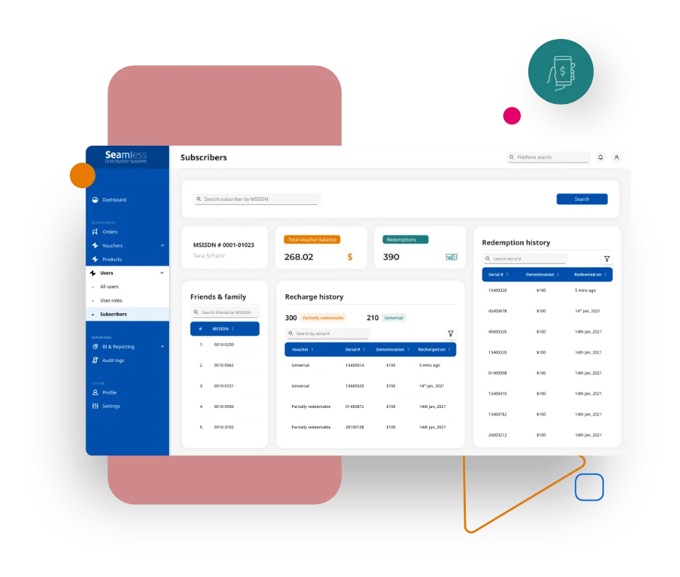 Voucher Management System (VMS) is a robust and market-responsive platform developed by Seamless Distribution Systems to manage the entire lifecycle of digital and physical vouchers. Trusted by leading mobile network operators (MNOs), VMS simplifies voucher creation, PIN generation, distribution, and redemption. It is designed to support multiple products, adapt to unique business needs, and improve market penetration while growing ARPU.