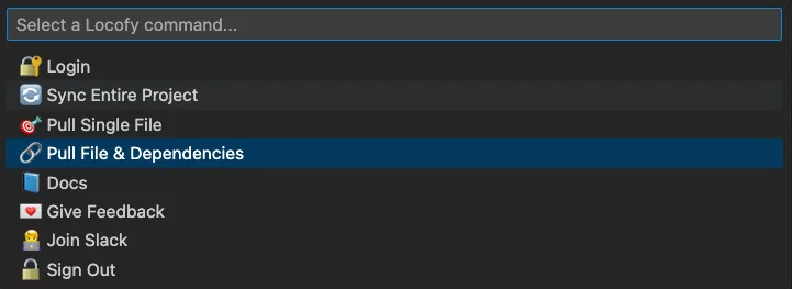 - Project Synchronization: Pull full projects or specific files from Locofy Builder into your local workspace.