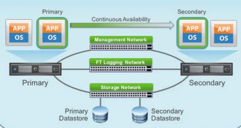 - Automatic Failover and Recovery: In the event of a failure, vSphere FT automatically triggers failover to the secondary VM and initiates the creation of a new secondary VM to restore redundancy, all without manual intervention.