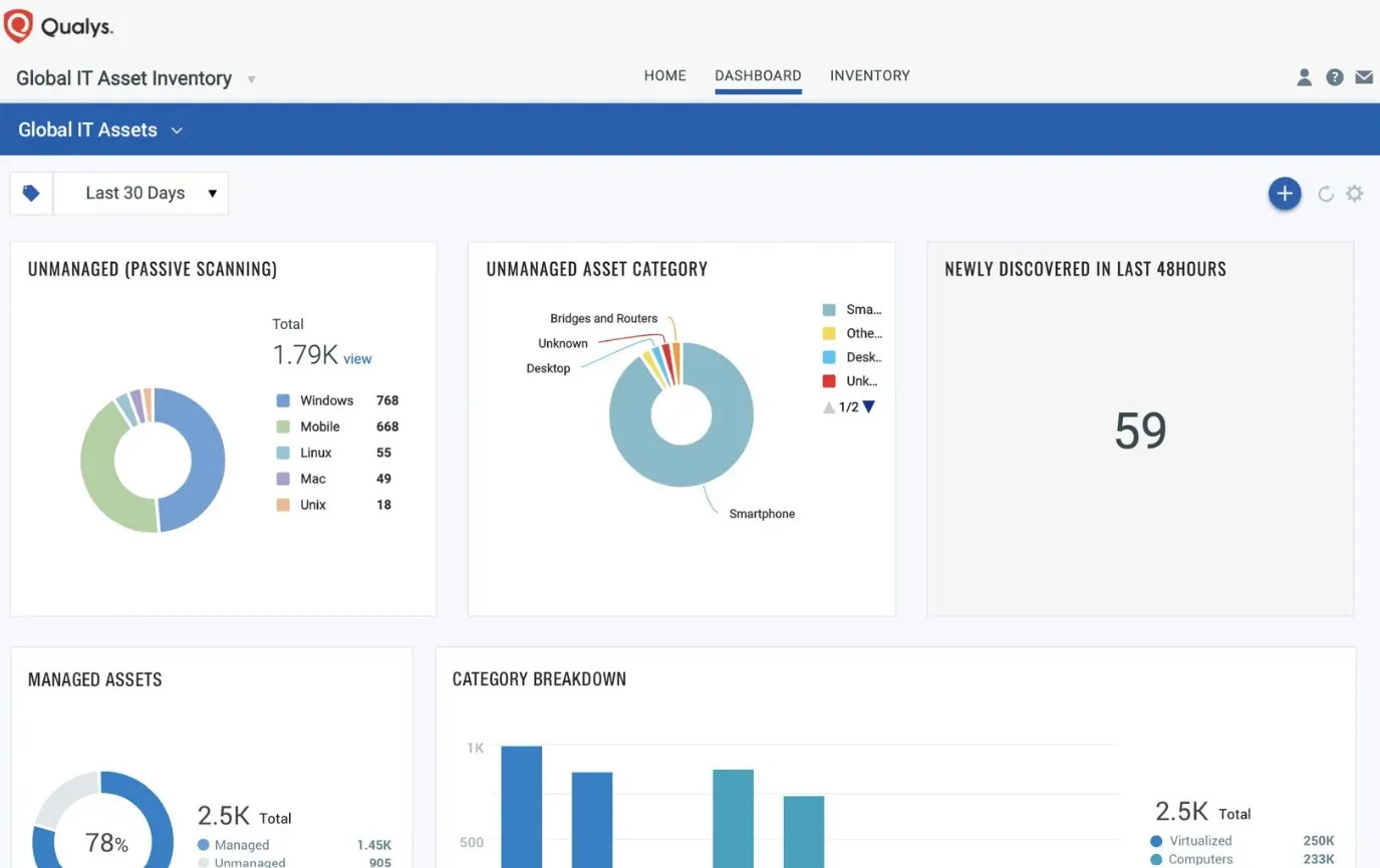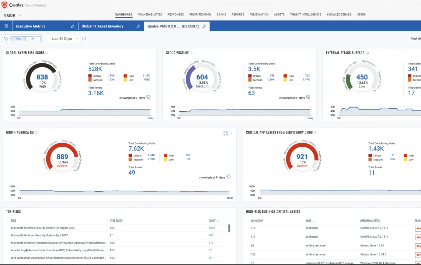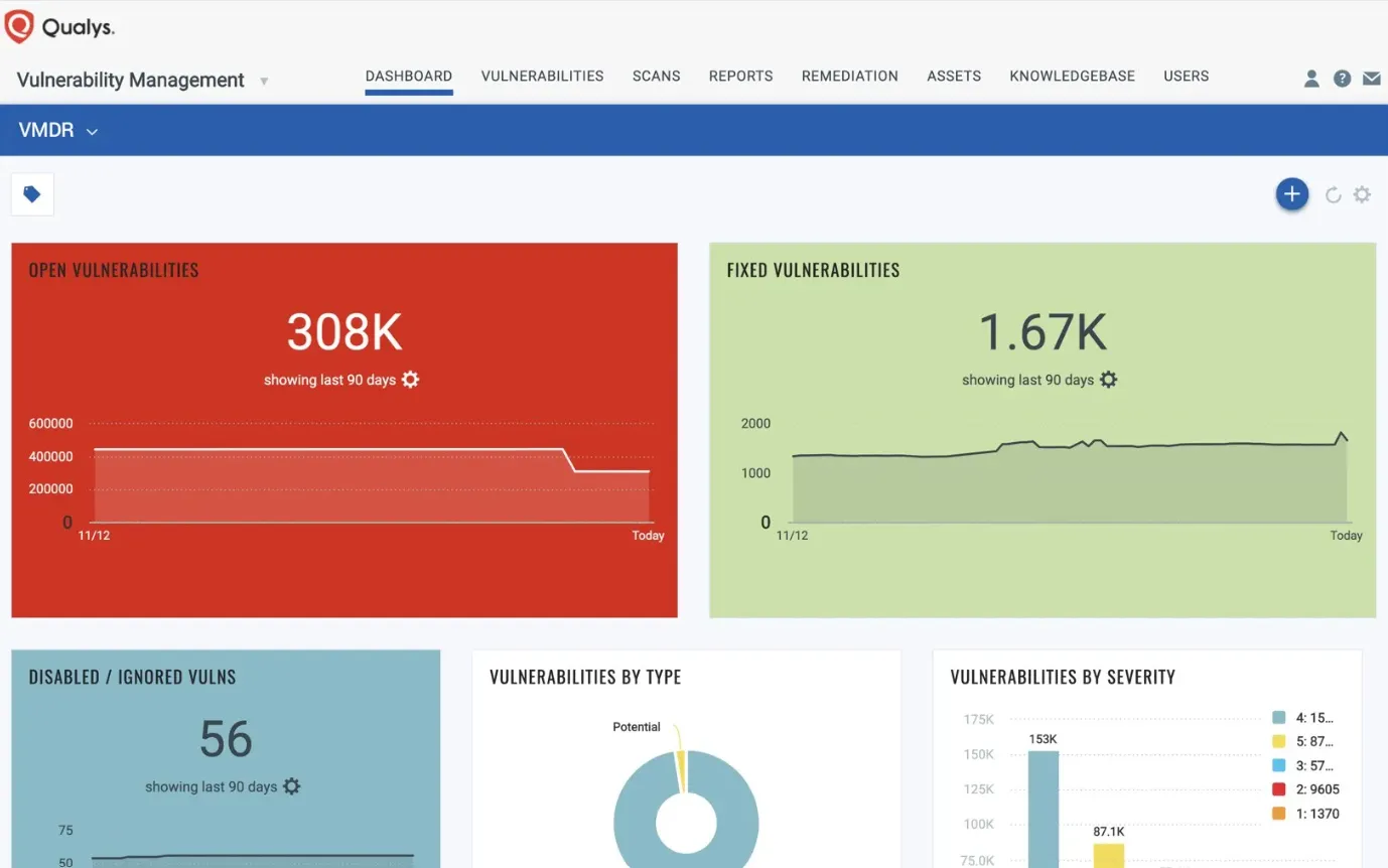 Use a Risk-Based Vulnerability Management (RBVM) approach with VMDR and CyberSecurity Asset Management.