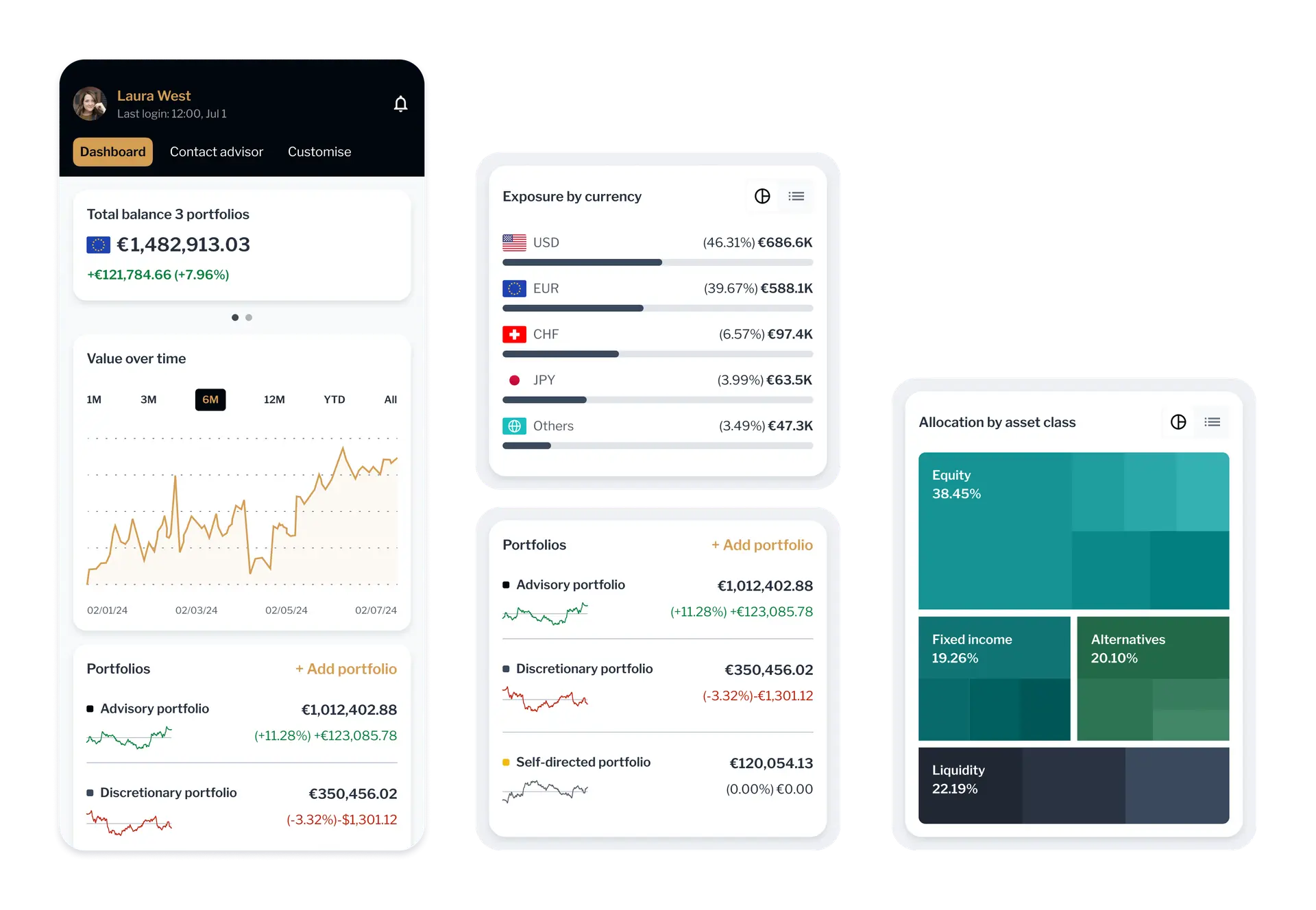- Offer clients a comprehensive view of their wealth with personalized dashboards, quick access to insights, real time portfolio performance data, and more
