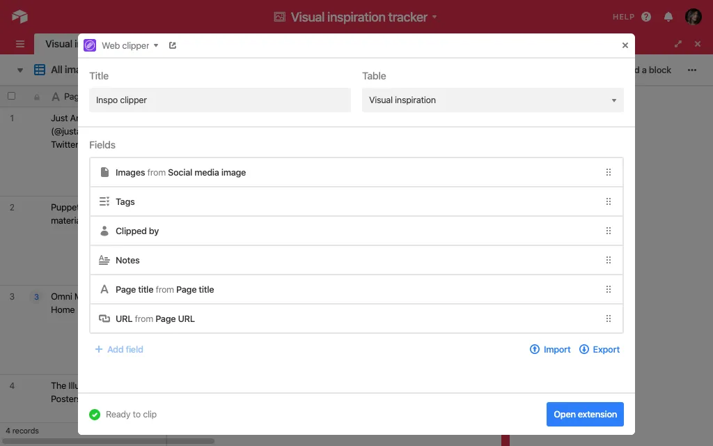 Web clipperAirtable