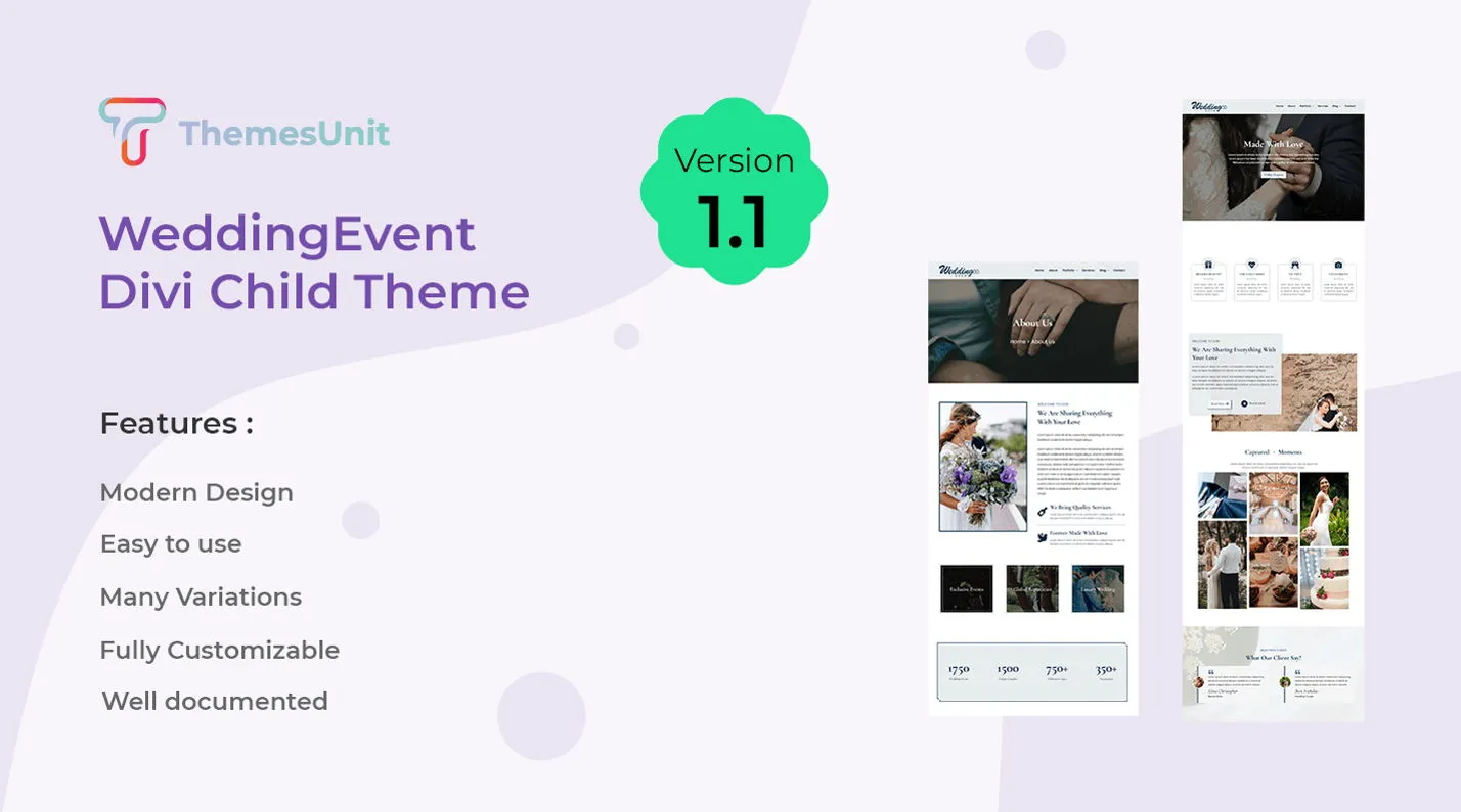 WeddingEvent is a beautifully crafted Divi child theme designed for wedding websites. Whether you're a couple sharing your story or a planner showcasing services, this theme offers romantic visuals, RSVP forms, event details, and galleries. With soft colors and elegant typography, it creates a memorable online experience for guests and clients alike.