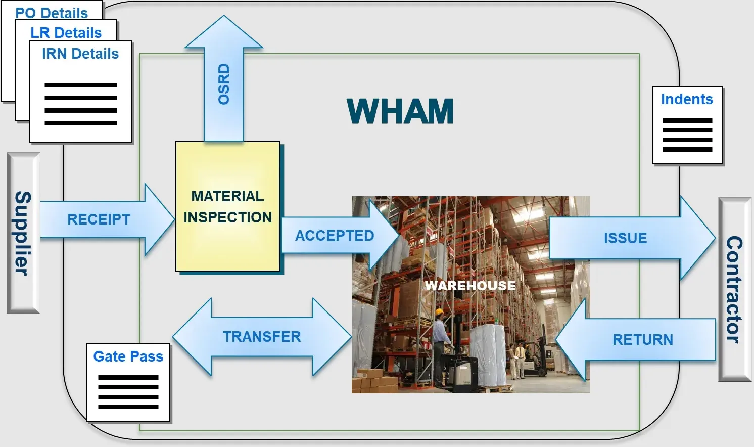 Warehouse Management System (WHAM) is a key part of the Material Management and primarily aims to control receipt, storage and issue of materials within a warehouse and process the associated transactions, including receiving, issuing, returning and transferring.