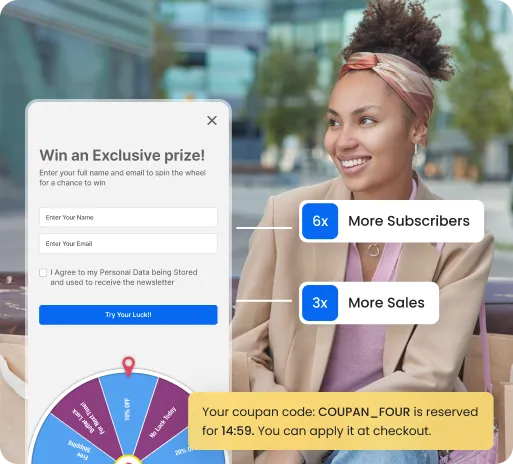 - Gamified Popups: Engage visitors with interactive spin wheels offering instant rewards.