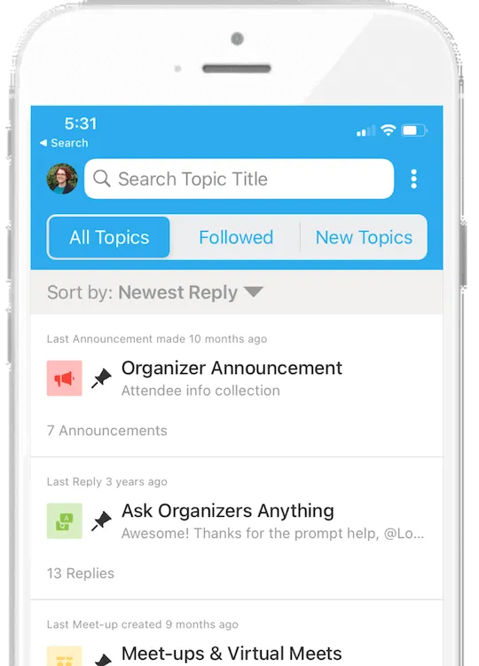 - **Community Board: **Meet-ups, ice-breakers, discussions, & more