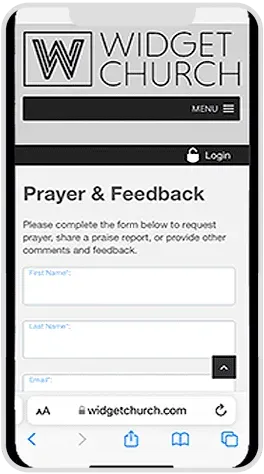 Prayer is at the heart and soul of believers. The Prayer and Feedback Widget gives members a way to submit a prayer request, even making it confidential if they prefer! They can also submit a praise report, comment, or other feedback as they feel led to do so.