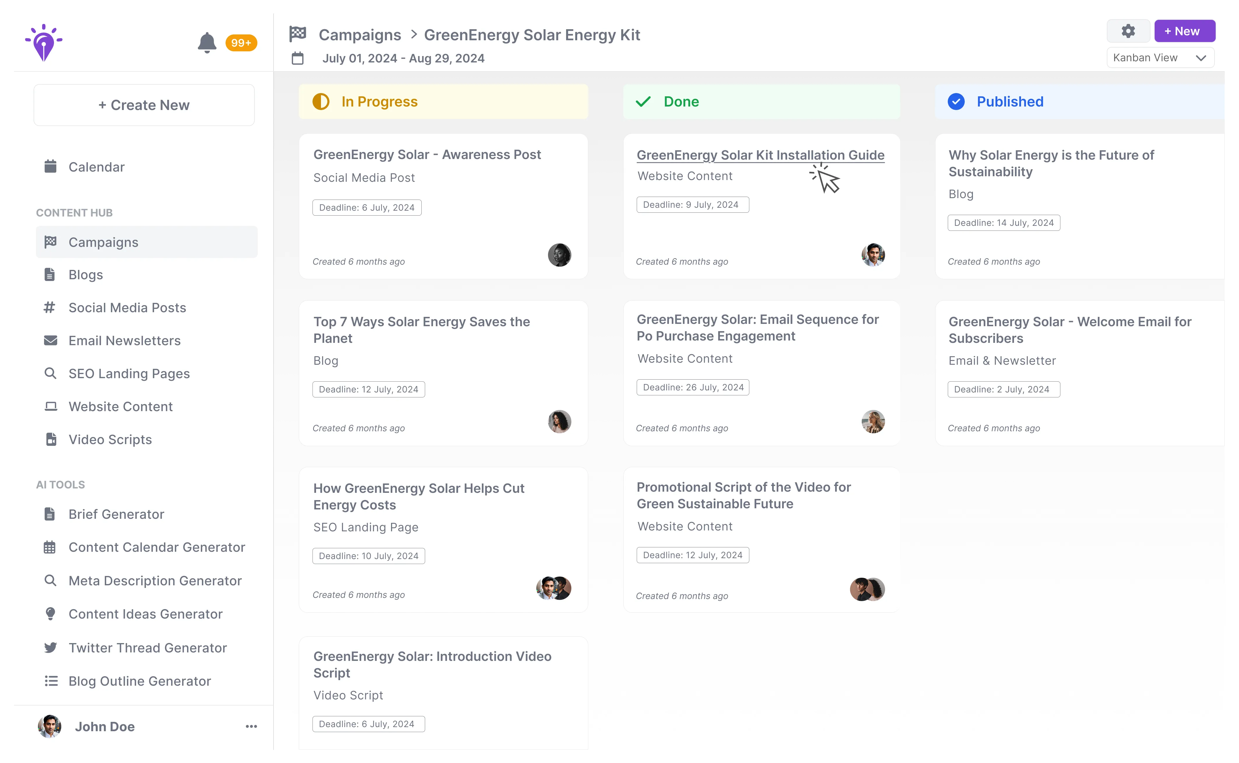 - Project Management: Provides a centralized view of the content pipeline, including calendars, team assignments, and progress tracking.