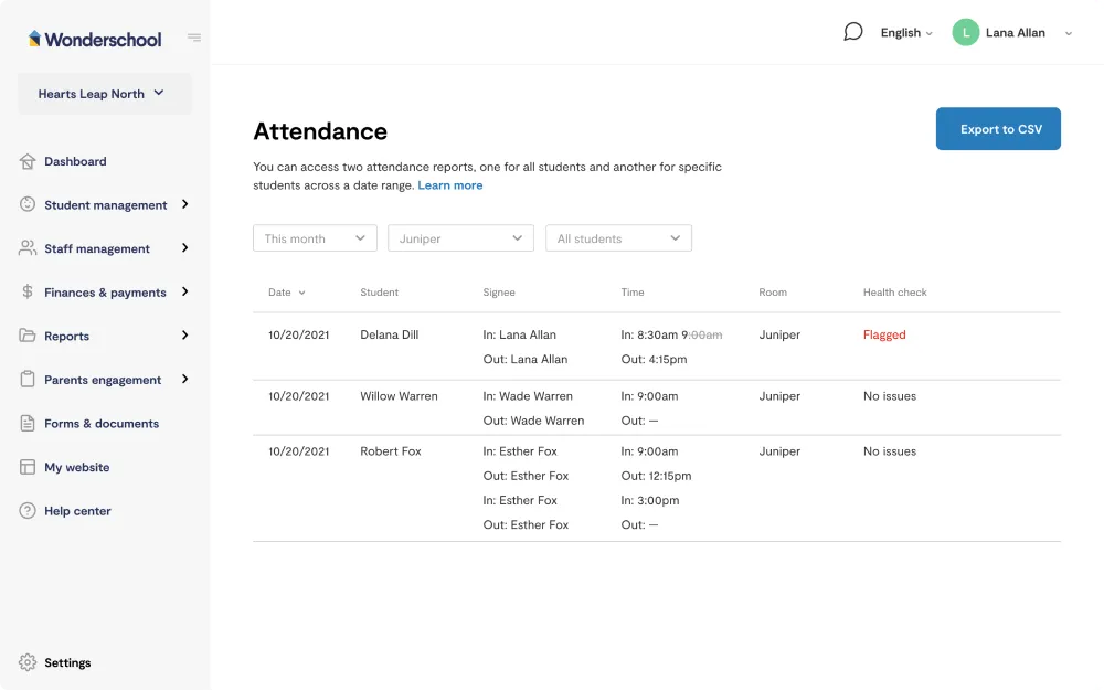 Wonderschool Directors streamlines enrollment, billing, staff management, parent communication, and compliance for child care program directors.
