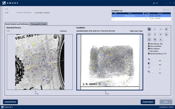 - Forensic analysis, processing, and reporting of biometric fingerprint evidence, comparisons, and search results.