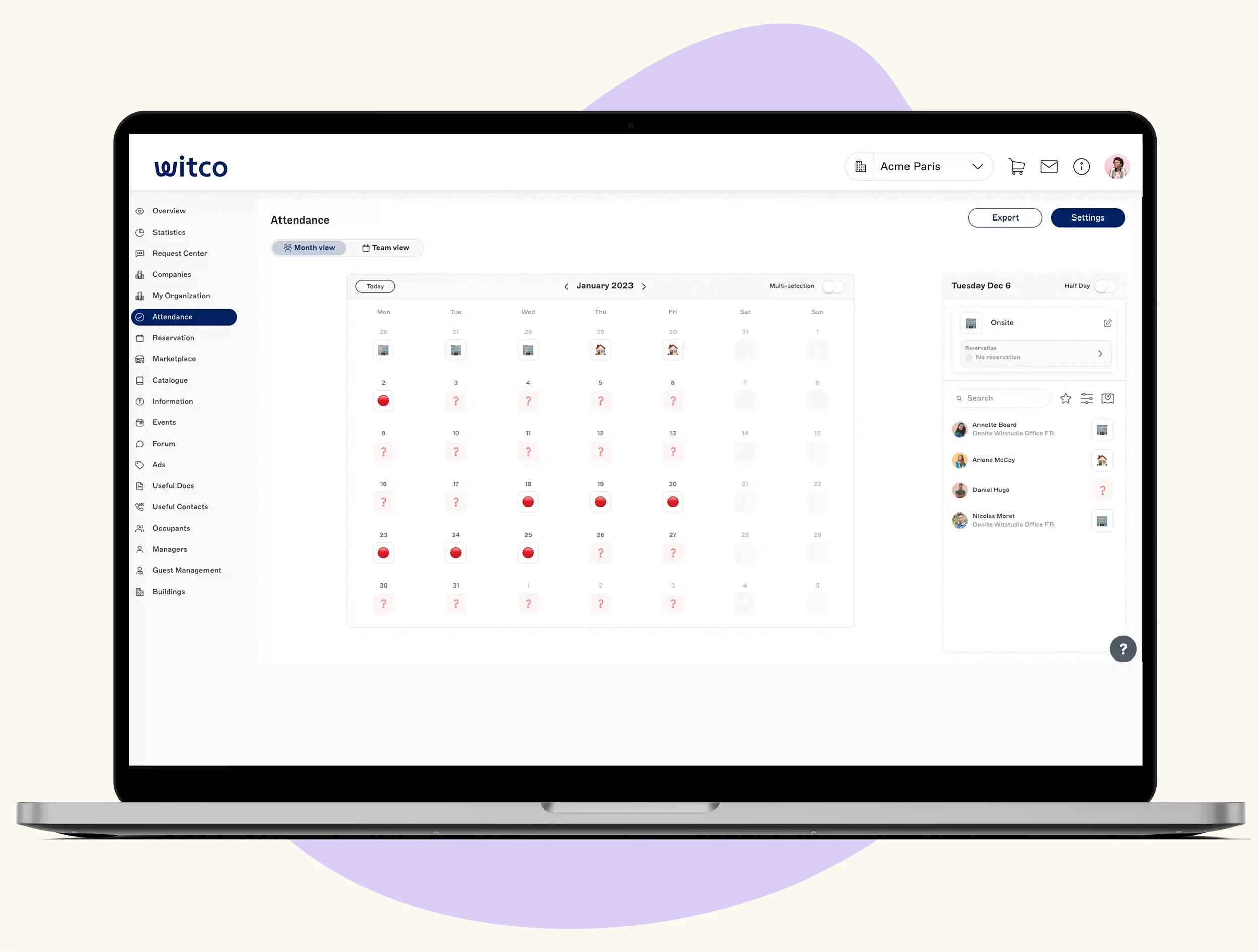 Plan absences in Witco via Workday, giving employees/managers self-service and HR accurate data and workforce insights through an API integration.
