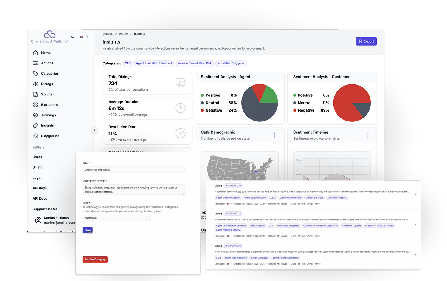 - Real-time Coaching & Alerts: Near-real-time detection of compliance breaches, churn signals and conversational breakdowns with automated alerts and coaching recommendations to agents and supervisors.