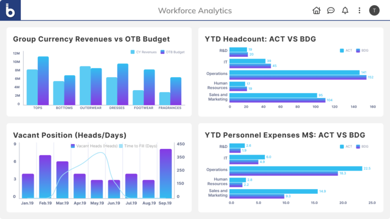 Go beyond HR data analysis with the Enterprise Planning Platform that enables employee segmentation, data forecasting, and the deployment of human resource metrics. Board gives human resources teams greater visibility of the key value drivers underpinning the human capital management process and enables them to extract insights from raw data to maximize workforce effectiveness.