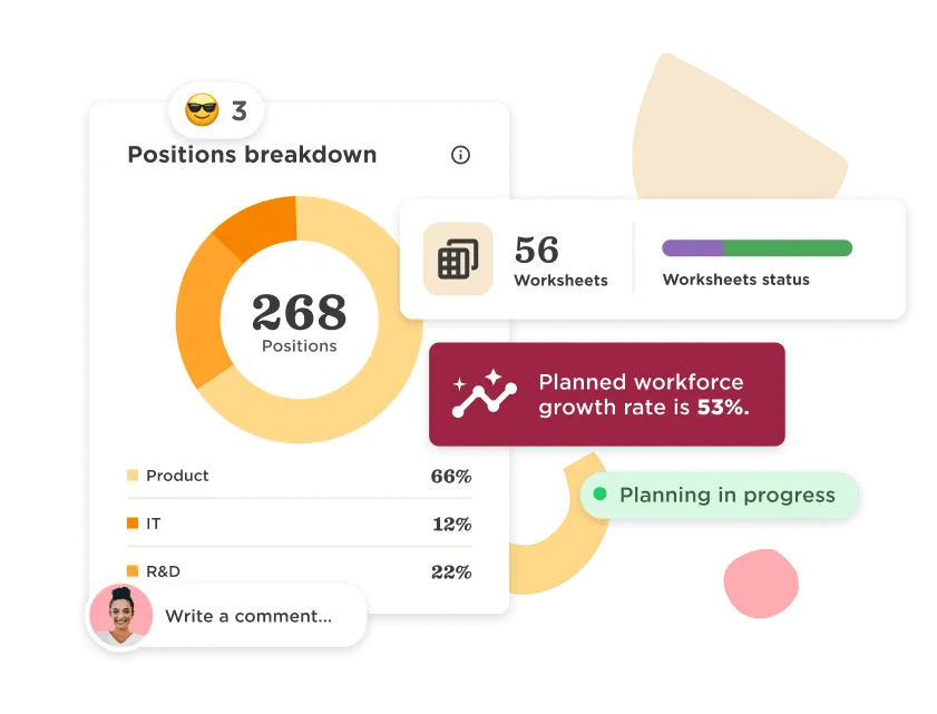Create multiple headcount plans for any event or business strategy, such as opening a new site, a reorg, or an acquisition. Prepare for multiple events simultaneously. Empower your managers to get involved by setting up events that align with their goals, and include finance in the planning with budget management and allocation—creating a collaborative workforce planning process across the company.