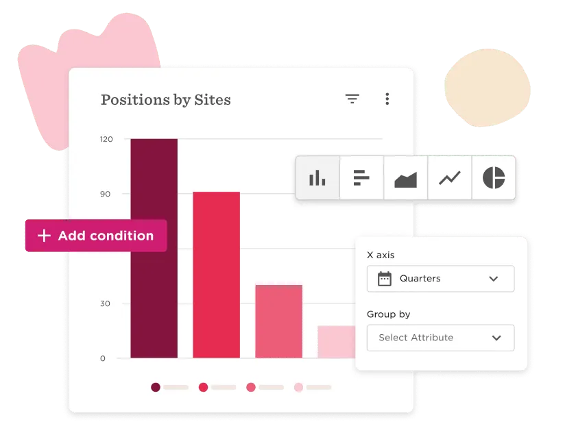 Build a single view of your positions—both current and planned—and add, edit, postpone, or cancel positions as your plans evolve and change. Give your managers access to view open positions for their teams and request new positions as needed. Stay on track by creating timelines and hiring plans for your recruitment team. It’s simple.