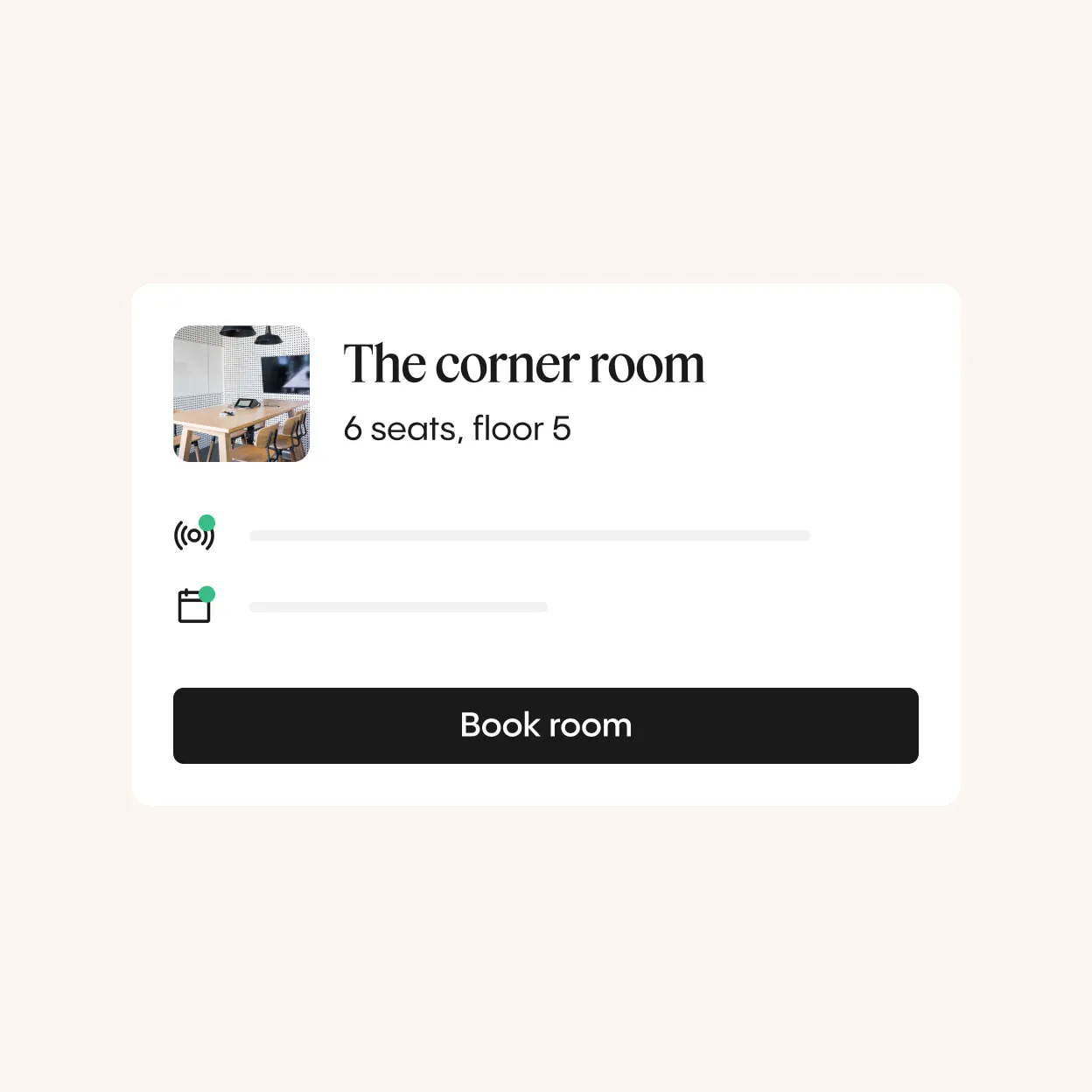 - Desk, meeting room, and amenity booking.
