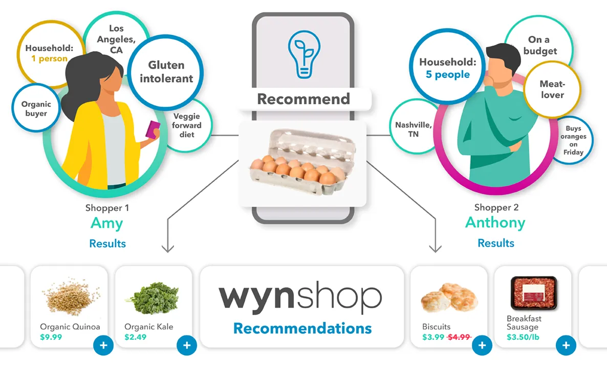 Wynshop Personalization is a grocery-focused personalization platform powered by Halla Intelligence, a proprietary human preference engine built from over 100 billion shopper and product data connections. The solution delivers real-time, context-aware product curation across digital storefronts, marketing channels, smart carts, and in‑store fulfillment workflows. It interprets shopper intent and behavior to recommend complementary items, propose personally relevant substitutions based on live inventory, and surface products via an NLP-driven semantic search tuned to grocery attributes. By treating each shopper as a unique profile and incorporating interactions within milliseconds, the platform increases conversion, reduces substitution errors, and improves fill rates while preserving customer satisfaction. Integration is API-first and plug-and-play, enabling fast deployment into existing e‑commerce stacks and omnichannel strategies without lengthy cold starts. The technology suite is positioned to help grocers of various sizes optimize discovery, reduce cart abandonment, and deliver tailored experiences that reflect household preferences and product characteristics specific to grocery retail.