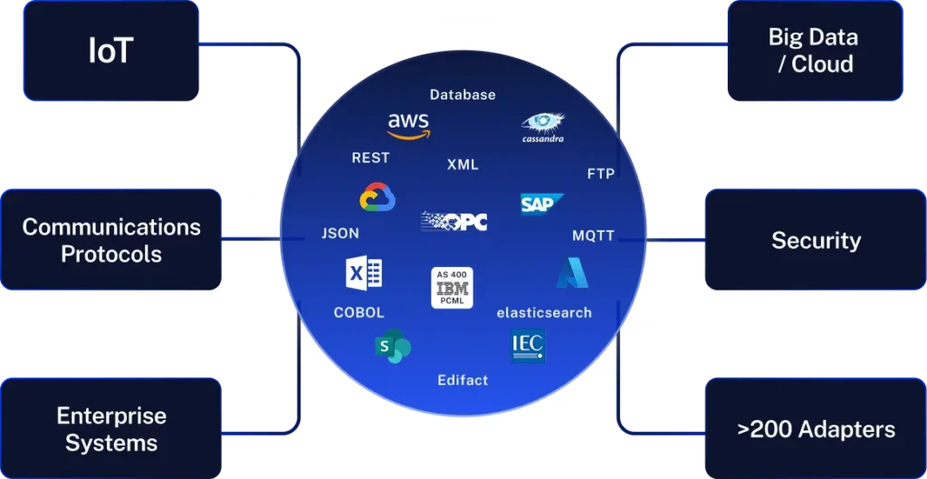 - Over 200 Adapters: Connect ERP, CRM, IoT, and legacy systems effortlessly.