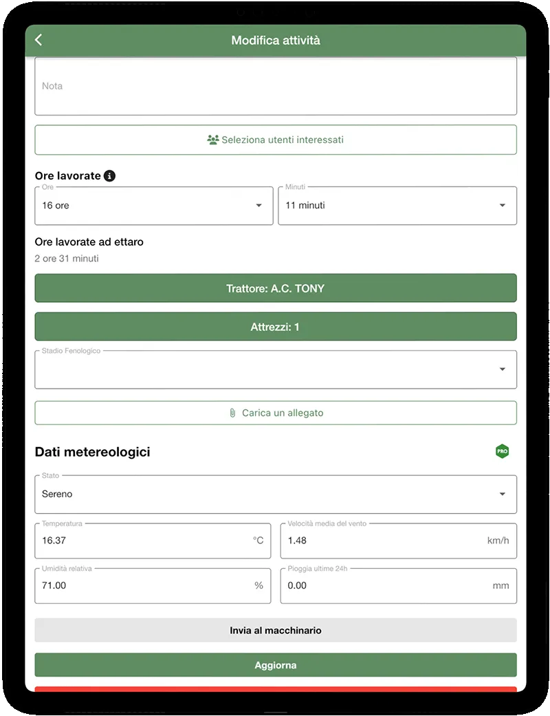 - Weather Details for Activities: Automatically logs weather data for recorded farm activities.