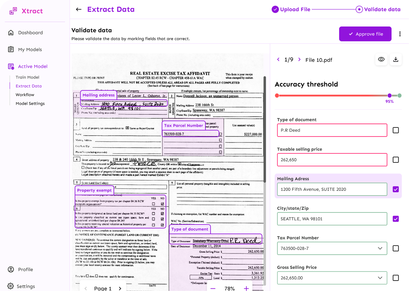 We combine the power of AI with human in the loop validation services to ensure 99% accuracy of any extracted data.