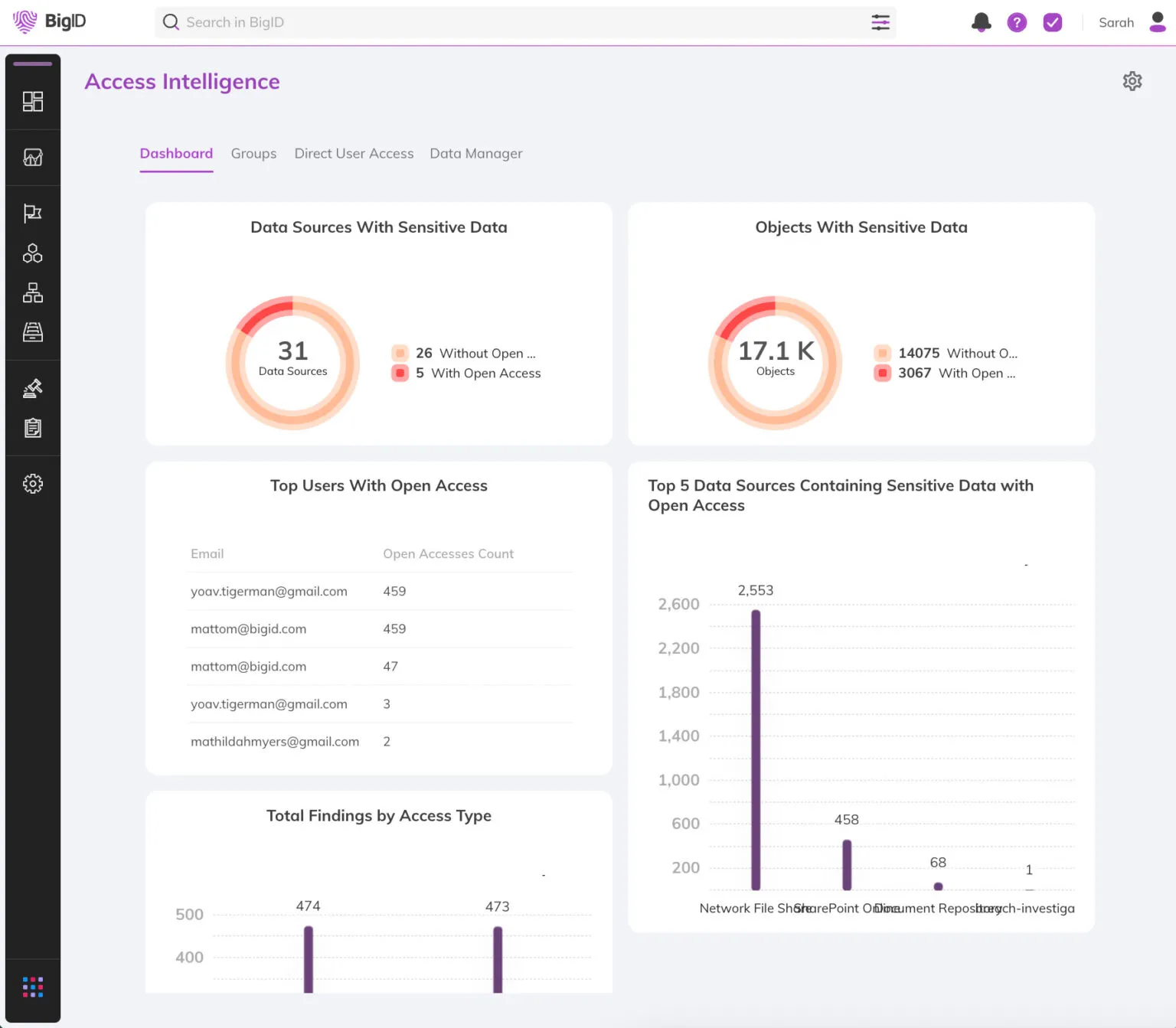 - Automatically identifies overexposed data and overprivileged users