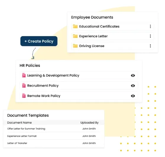 - Employee Management: Centralized dashboard for employee data, customizable fields, role-based access, and organizational hierarchy.