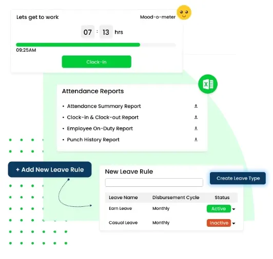 - Attendance Management: GPS and biometric tracking, shift planning, leave policies, real-time reports, and payroll sync.
