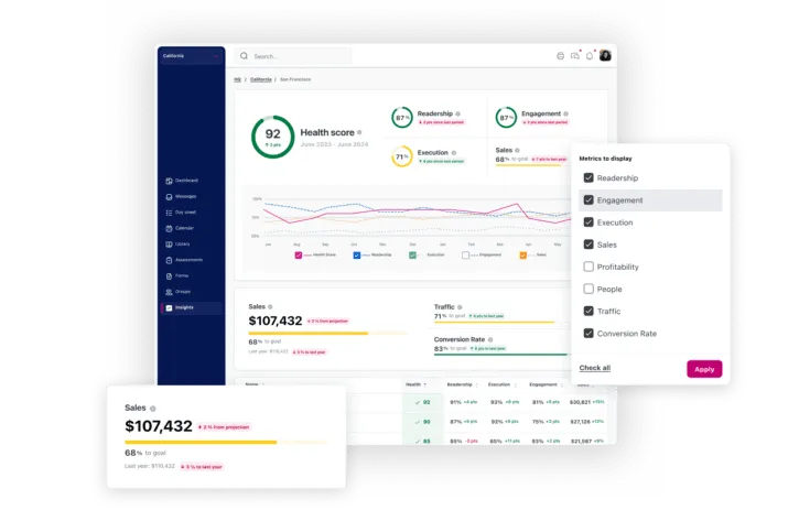 - Surveys & Feedback: Built-in tools for collecting frontline input and measuring sentiment.
