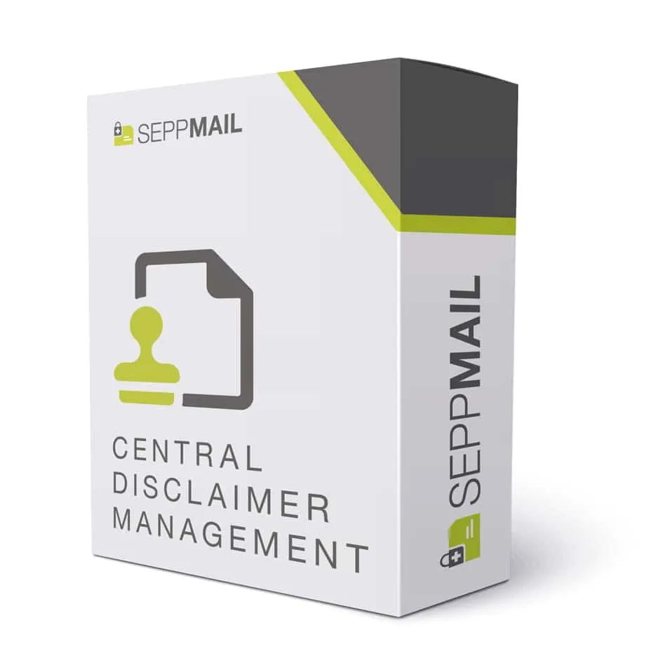Central Disclaimer ManagementThe SEPPmail solution can be expanded to include the “Central Disclaimer Management” module to counter the proliferation of email footers that exists in many places. This ensures that all outgoing emails are uniform and that legal policies (disclaimers) are covered in the email signature.